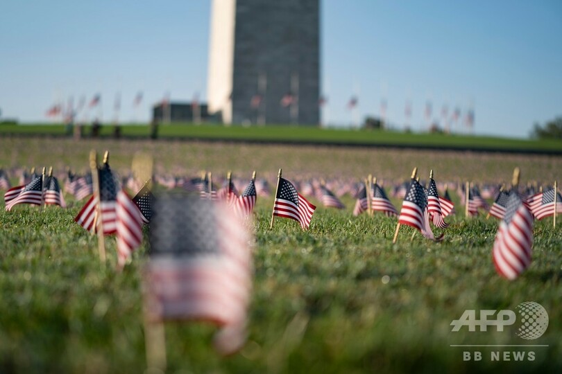 同大によると、米国での新型ウイルスによる死者数は20万3240人で、感染者数と同じく世界最多。(c)AFP
