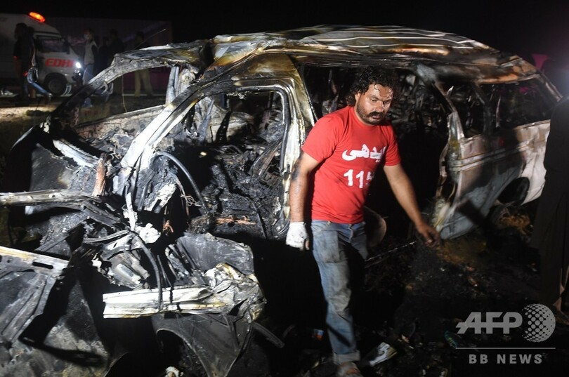 【9月27日 AFP】パキスタン当局は27日、同国南部で乗客を乗せたワゴン車が衝突・炎上し、少なくとも15人が死亡したと発表した。