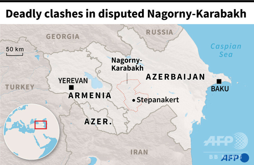 アルメニアとアゼルバイジャンは数十年にわたり、ナゴルノカラバフの帰属をめぐって対立している。アゼルバイジャンの自治州だったナゴルノカラバフでは、キリスト教徒で多数派のアルメニア系住民が1990年代初め、イスラム教徒が多数派を占めるアゼルバイジャンからの分離を要求し、死者3万人を出す武力紛争の末に支配権を握った。2016年にも軍事衝突で犠牲者が出ている。