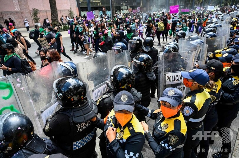 女性同士で衝突、妊娠中絶合法化デモと警官隊 メキシコ