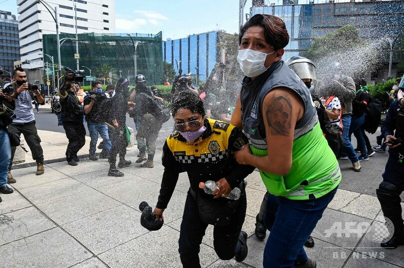 女性同士で衝突、妊娠中絶合法化デモと警官隊 メキシコ