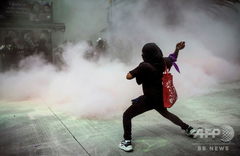 メキシコでは女性への暴力が増加傾向にあり、フェミニスト団体らは姿勢を強硬化させている。公式統計によると、メキシコでは1日平均10人の女性が殺害されており、加害者が罰せられないケースも多いという。(c)AFP