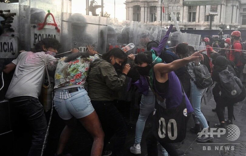 女性同士で衝突、妊娠中絶合法化デモと警官隊 メキシコ