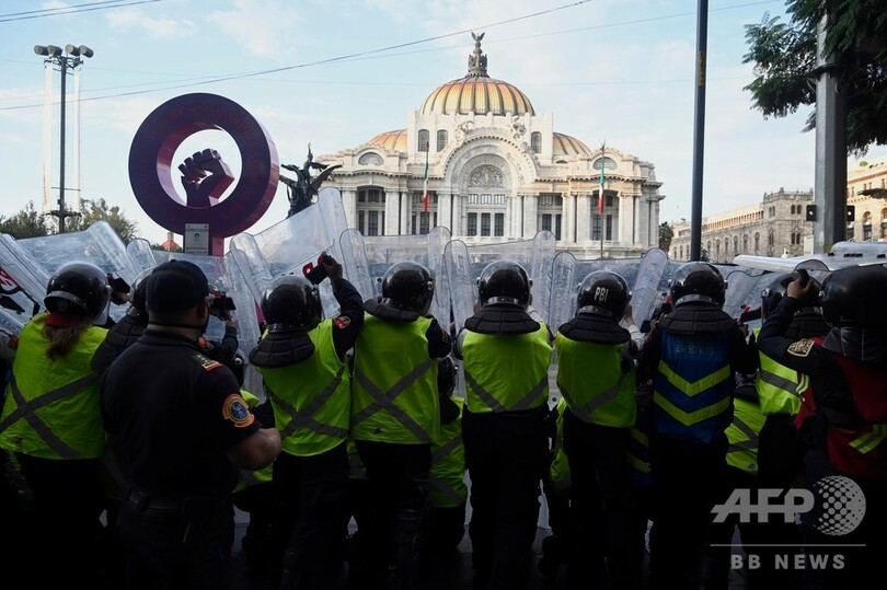 メキシコでは女性への暴力が増加傾向にあり、フェミニスト団体らは姿勢を強硬化させている。公式統計によると、メキシコでは1日平均10人の女性が殺害されており、加害者が罰せられないケースも多いという。(c)AFP