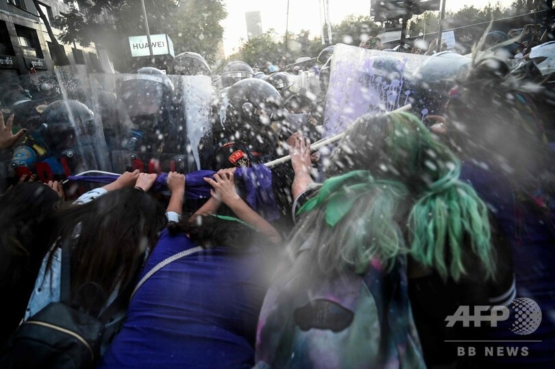 女性同士で衝突、妊娠中絶合法化デモと警官隊 メキシコ