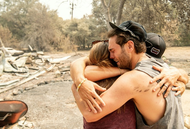【9月29日 AFP】米カリフォルニア州オロビル(Oroville)湖のそばで、橋を眺めていた。夜空がオレンジ色に染まり、遠くの木々のこずえを照らしている。丘の中腹に炎が点在し、湖面に反射している。写真を1枚撮った。ビッドウェル・バー(Bidwell Bar)橋を渡る道路は、山火事のど真ん中へと、まっすぐ突き進んでいるように見える。