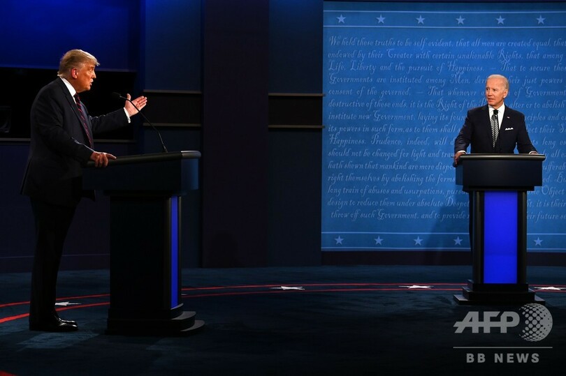 【9月30日 AFP】米大統領選の共和党候補ドナルド・トランプ(Donald Trump)大統領(74)と民主党候補ジョー・バイデン(Joe Biden)前副大統領(77)の第1回テレビ討論会が29日、中西部オハイオ州クリーブランド(Cleveland)で行われた。最高裁判事の指名や新型コロナウイルス、医療制度といったテーマをめぐり、大統領としての適正や信頼性について互いが激しく応酬する展開となった。