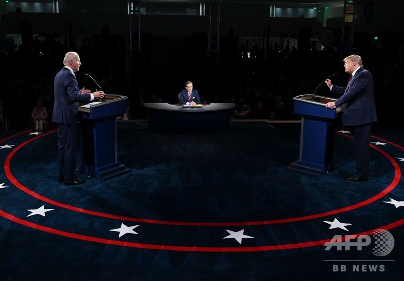 【9月30日 AFP】米大統領選の共和党候補ドナルド・トランプ(Donald Trump)大統領(74)と民主党候補ジョー・バイデン(Joe Biden)前副大統領(77)の第1回テレビ討論会が29日、中西部オハイオ州クリーブランド(Cleveland)で行われた。最高裁判事の指名や新型コロナウイルス、医療制度といったテーマをめぐり、大統領としての適正や信頼性について互いが激しく応酬する展開となった。