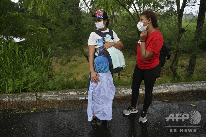 ホンジュラス・ヨロ(Yoro)県エルネグリト(El Negrito)からやってきた若者グループの20歳の男性は、「私たちはパンデミックのことなど考えていない。今はそれどころじゃない」とAFPに語った。男性はソーシャルメディアのメッセージを見て米国を目指すキャラバンに加わったという。