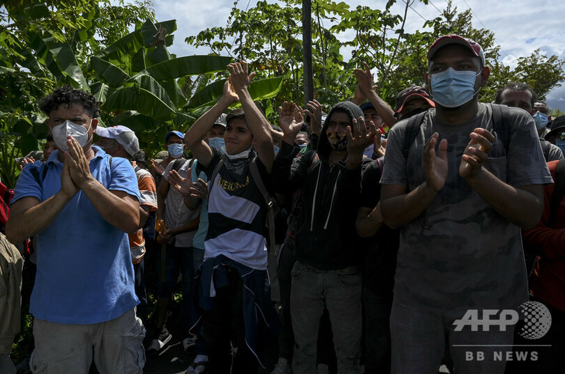 ホンジュラス・ヨロ(Yoro)県エルネグリト(El Negrito)からやってきた若者グループの20歳の男性は、「私たちはパンデミックのことなど考えていない。今はそれどころじゃない」とAFPに語った。男性はソーシャルメディアのメッセージを見て米国を目指すキャラバンに加わったという。
