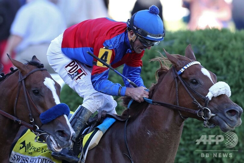 【10月4日 AFP】米国競馬のG1レース、第145回プリークネス・ステークス(145th Preakness Stakes、3歳、ダート約1900メートル)が3日、米メリーランド州ボルティモア(Baltimore)のピムリコ競馬場(Pimlico Race Course)で開催され、ロビー・アルバラード(Robby Albarado)騎手騎乗のスイススカイダイバー(Swiss Skydiver)がオーセンティック(Authentic)とのスリリングな直線勝負を制し、大会史上6頭目の優勝牝馬となった。