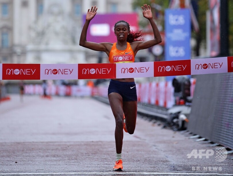 一方の女子の部では、見事な独走を見せたブリジット・コスゲイ(Brigid Kosgei)が2時間18分58秒で大会連覇を達成し、ケニアが面目を保った。米国のサラ・ホール(Sara Hall)が自己最高の2時間22分1秒をマークして2位に入った。(c)AFP