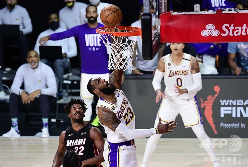 【10月5日 AFP】19-20NBAファイナル(7回戦制)は4日、米フロリダ州オーランド(Orlando)で第3戦が行われ、ジミー・バトラー(Jimmy Butler)がトリプルダブルを記録したマイアミ・ヒート(Miami Heat)が115-104でロサンゼルス・レイカーズ(Los Angeles Lakers)に勝利し、1勝を返した。
