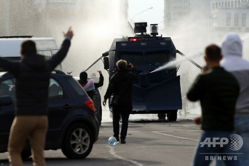 【10月5日 AFP】ベラルーシ首都ミンスクで4日、拘束されている反政権派活動家らの解放を求めるデモが行われ、数万人が参加した。警察は参加者らを解散させるため、放水砲を使用した。