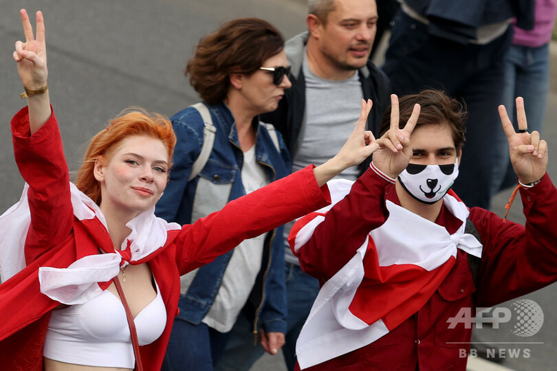 拘束中の反政権派活動家の解放要求、ベラルーシで大規模デモ