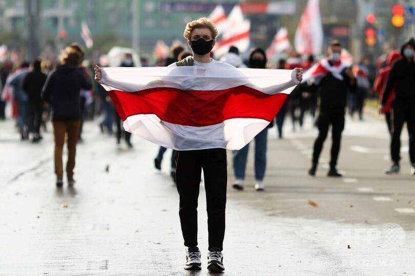 【10月5日 AFP】ベラルーシ首都ミンスクで4日、拘束されている反政権派活動家らの解放を求めるデモが行われ、数万人が参加した。警察は参加者らを解散させるため、放水砲を使用した。