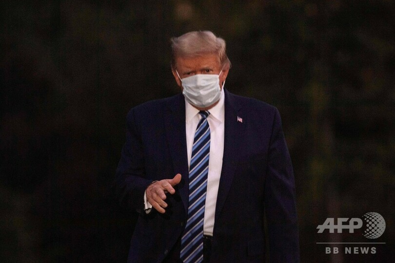 トランプ氏はマスクを着けて退院。車に乗り込む際には親指を立てて見せた。ヘリコプターに乗り換えてホワイトハウスに到着すると、マスクを外してあいさつした。今後はホワイトハウスで治療を続けるという。