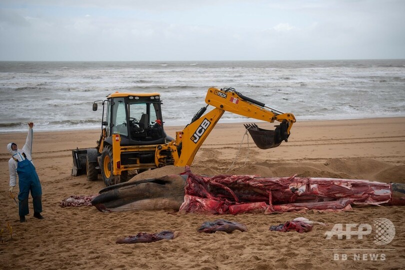 仏西部の浜辺にクジラの死骸漂着、解体し撤去