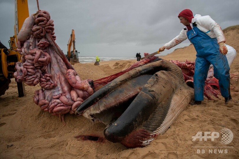 仏西部の浜辺にクジラの死骸漂着、解体し撤去