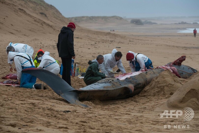 仏西部の浜辺にクジラの死骸漂着、解体し撤去