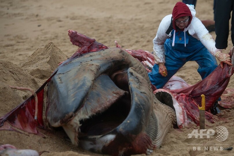 仏西部の浜辺にクジラの死骸漂着、解体し撤去