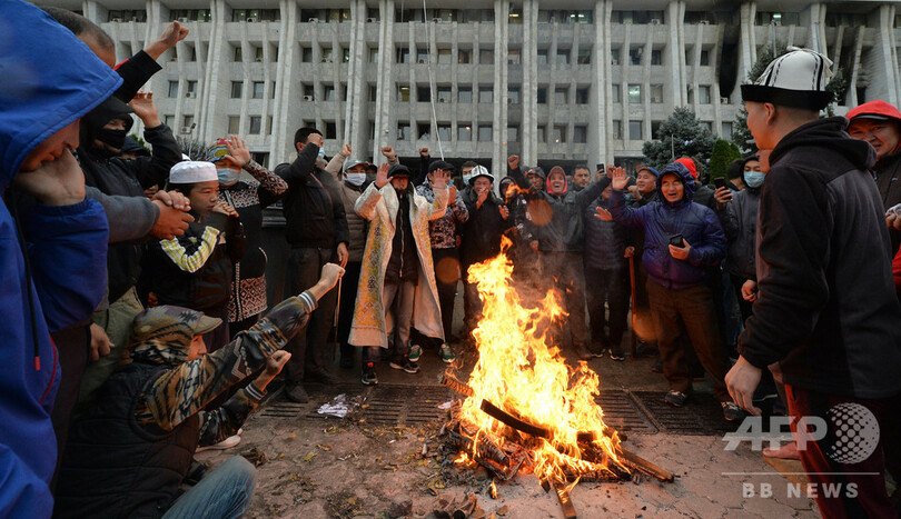 票の買収が疑われていた議会選の結果に抗議するデモ隊は、首都ビシケクで警官隊と衝突。議会と大統領府の入る建物を占拠し、拘束されていたアルマズベク・アタムバエフ(Almazbek Atambayev)前大統領を解放した。