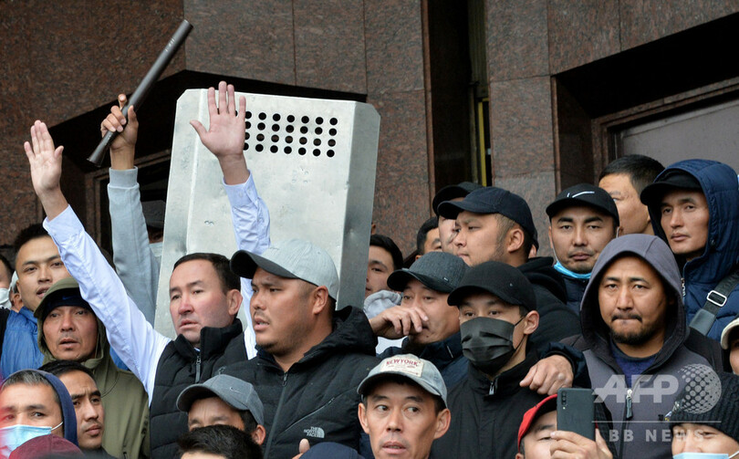 票の買収が疑われていた議会選の結果に抗議するデモ隊は、首都ビシケクで警官隊と衝突。議会と大統領府の入る建物を占拠し、拘束されていたアルマズベク・アタムバエフ(Almazbek Atambayev)前大統領を解放した。
