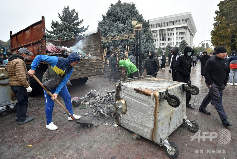票の買収が疑われていた議会選の結果に抗議するデモ隊は、首都ビシケクで警官隊と衝突。議会と大統領府の入る建物を占拠し、拘束されていたアルマズベク・アタムバエフ(Almazbek Atambayev)前大統領を解放した。