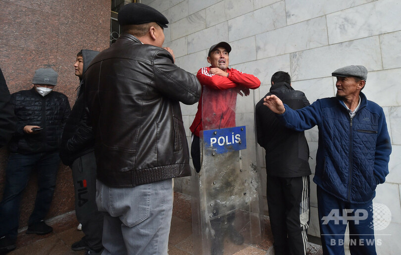 票の買収が疑われていた議会選の結果に抗議するデモ隊は、首都ビシケクで警官隊と衝突。議会と大統領府の入る建物を占拠し、拘束されていたアルマズベク・アタムバエフ(Almazbek Atambayev)前大統領を解放した。