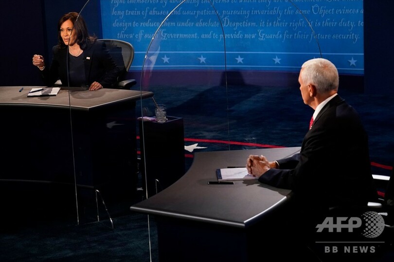 【10月8日 AFP】(更新)来月の米大統領選に向けた共和党のマイク・ペンス(Mike Pence)副大統領と民主党のカマラ・ハリス(Kamala Harris)上院議員による副大統領候補テレビ討論会が7日、米ユタ州ソルトレークシティー(Salt Lake City)で開催された。ハリス氏は、ドナルド・トランプ(Donald Trump)大統領政権の新型コロナウイルス対策は歴代の米政権で「最大の失敗」だと批判した。