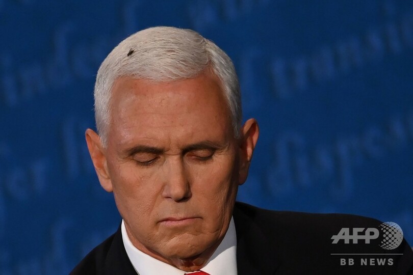 ペンス米副大統領の頭にハエ、討論中に2分間静止 ネットで話題に