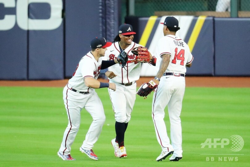 ダンズビー・スワンソン(Dansby Swanson)とトラビス・ダーノー(Travis d'Arnaud)にソロアーチが飛び出したブレーブスは、8日の一戦で3連勝を飾れば勝ち上がりが決まる。(c)AFP