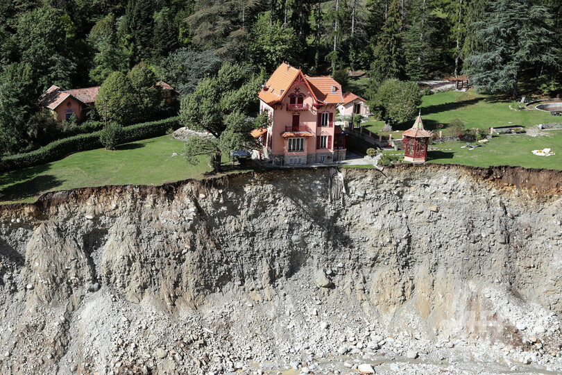 【10月12日 AFP】フランス南東部アルプマリティム(Alpes-Maritimes)県を豪雨と洪水が襲い、甚大な被害を受けたサンマルタンベジュビー(Saint-Martin-Vesubie)の空撮写真。同県の町村は、孤立状態になった。(c)AFP