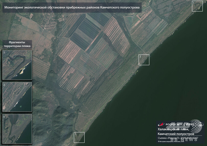 油膜はこれまで、静止状態で、ほぼ1か所の海岸にとどまっていると考えられていたが、研究者らが航空撮影を行ったところ「小さくなることなく」、日本と領有権を争うクリール諸島(Kuril Islands、北方領土を含む千島列島)に向かって「徐々に南に移動している」ことが分かったという。