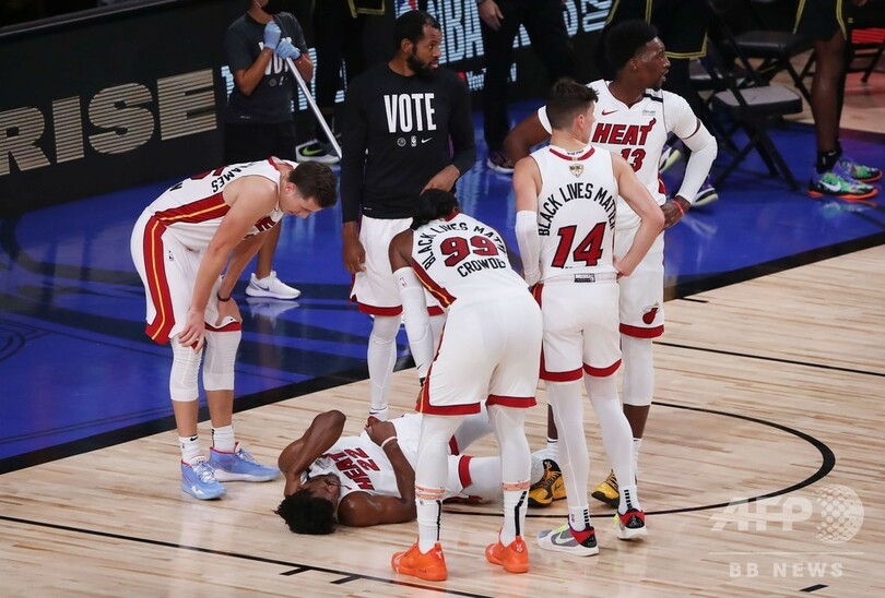 バトラーは試合時間残り16.8秒で決勝のフリースローを沈めるなど、35得点、12リバウンド、11アシストを記録。チームも40得点をマークしたレブロン・ジェームズ(LeBron James)のパフォーマンスに耐え、王手をかけていたレイカーズの優勝決定を阻んだ。