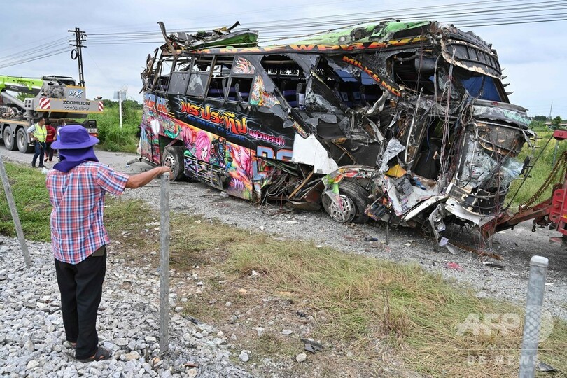 バスが列車と衝突、18人死亡 タイ・バンコク郊外