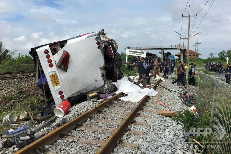 【10月11日 AFP】タイの首都バンコク郊外で11日、バスが列車と衝突し、バスの乗客ら少なくとも18人が死亡、重体4人を含む40人以上が負傷した。