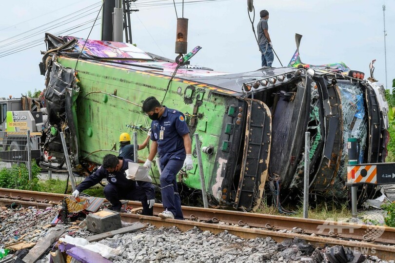 バスが列車と衝突、18人死亡 タイ・バンコク郊外