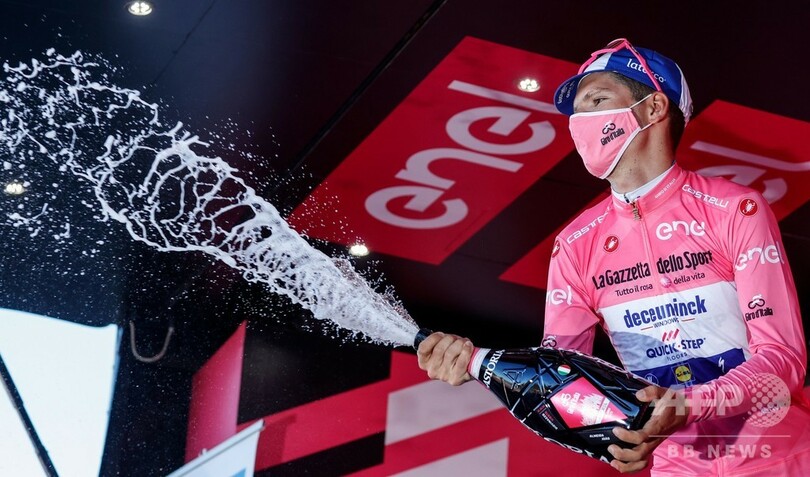総合争いでは、ドーセットから約14分遅れの17位でフィニッシュしたドゥクーニンク・クイックステップ(Deceuninck Quick Step)のジョアン・アルメイダ(Joao Almeida、ポルトガル)が、第9ステージの山岳ステージ(サンサルボからロッカラーゾ、208キロメートル)を前に総合首位のマリア・ローザ(ピンクジャージー)を守っている。(c)AFP