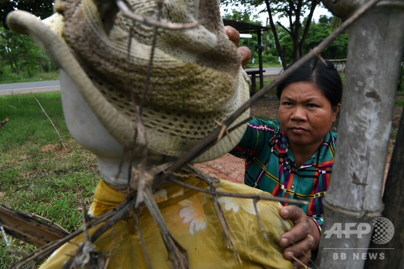 同国首都プノンペンの北東約110キロに位置するコンポンチャム(Kampong Cham)州に住む農家のソック・チャニー(Sok Chany)さん(45)は、今回、「コロナウイルスに家族が脅かされるのを防ぐためにティン・モンを立てた」と話す。チャニーさんが暮らす木造の高床式住宅の前には2体のかかしが立っている。