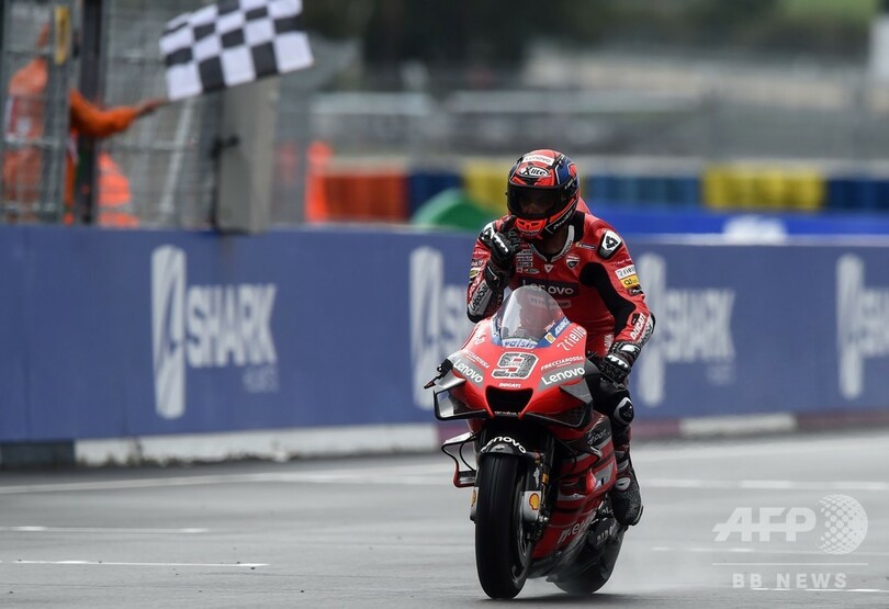 【10月12日 AFP】ロードレース世界選手権(WGP 2020)第10戦、フランスGPは11日、MotoGPクラス決勝が行われ、ドゥカティ(Ducati Team)のダニロ・ペトルッチ(Danilo Petrucci、イタリア)が、レプソル・ホンダ(Repsol Honda)の新人アレックス・マルケス(Alex Marquez、スペイン)を抑え、雨の影響を受けたレースを制して優勝を飾った。