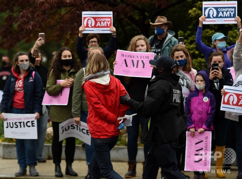 【10月13日 AFP】米国のドナルド・トランプ(Donald Trump)大統領が最高裁判事に指名した保守派のエイミー・コニー・バレット(Amy Coney Barrett)氏(48)の承認をめぐる公聴会が12日、上院司法委員会で始まった。上院の建物の前ではデモが行われ、参加者らは新型コロナウイルスのパンデミック(世界的な大流行)の中での公聴会開催は「無謀だ」と抗議した。