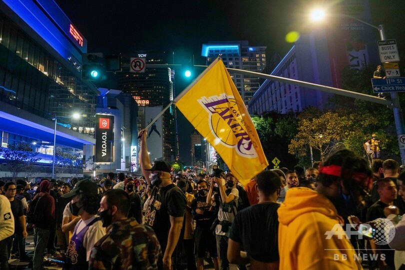 ロサンゼルス市警(LAPD)によると、レイカーズが106-93でマイアミ・ヒート(Miami Heat)に勝利したNBAファイナルの試合後、約1000人がレイカーズの本拠地ステープルズ・センター(Staples Center)の周辺に集まり、お祭り騒ぎを起こした。