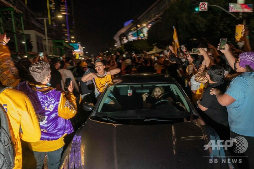 ロサンゼルス市警(LAPD)によると、レイカーズが106-93でマイアミ・ヒート(Miami Heat)に勝利したNBAファイナルの試合後、約1000人がレイカーズの本拠地ステープルズ・センター(Staples Center)の周辺に集まり、お祭り騒ぎを起こした。