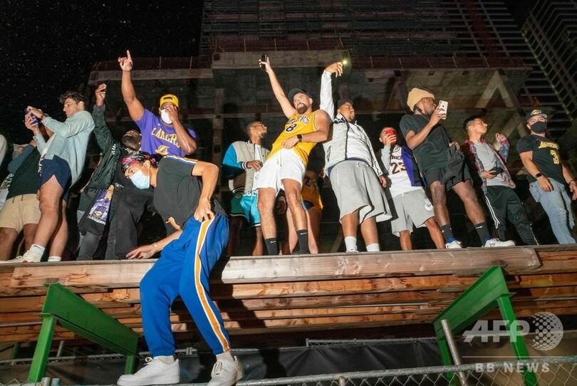 ロサンゼルス市警(LAPD)によると、レイカーズが106-93でマイアミ・ヒート(Miami Heat)に勝利したNBAファイナルの試合後、約1000人がレイカーズの本拠地ステープルズ・センター(Staples Center)の周辺に集まり、お祭り騒ぎを起こした。