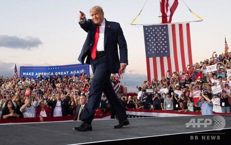 1週間前に退院したばかりのトランプ氏は、オーランド(Orlando)近郊サンフォード(Sanford)で行われた選挙集会で、1時間にわたって演説。「私は感染を体験し、今は免疫がある」「力がみなぎっている。会場の皆さんのところまで歩いて行って、全員にキスをしたいぐらいだ。男性にも、美しい女性にも、思い切りキスしたい」と語りかけた。声援を送る支持者の多くはマスクを着けていなかった。