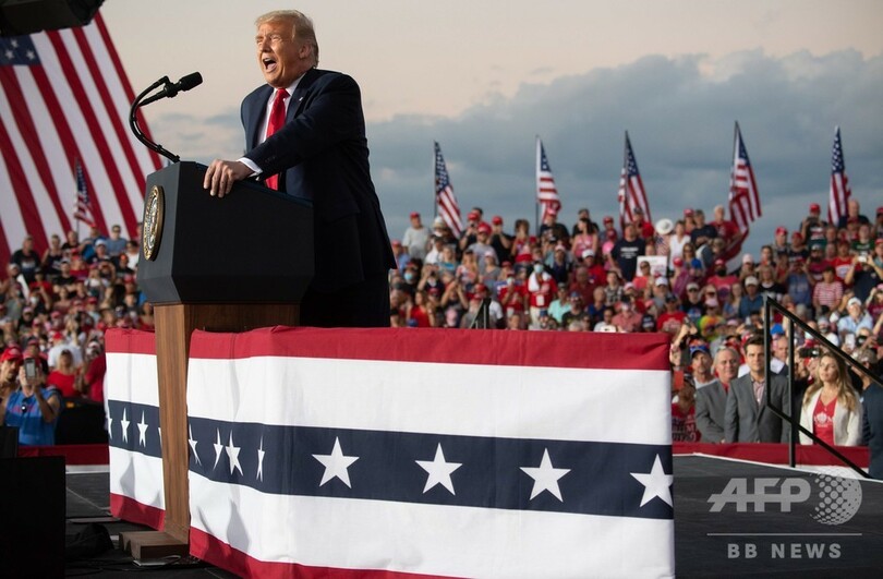 1週間前に退院したばかりのトランプ氏は、オーランド(Orlando)近郊サンフォード(Sanford)で行われた選挙集会で、1時間にわたって演説。「私は感染を体験し、今は免疫がある」「力がみなぎっている。会場の皆さんのところまで歩いて行って、全員にキスをしたいぐらいだ。男性にも、美しい女性にも、思い切りキスしたい」と語りかけた。声援を送る支持者の多くはマスクを着けていなかった。
