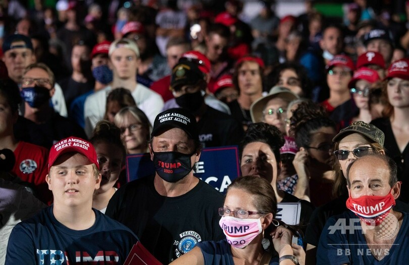 トランプ氏の集会や行事は対照的に大勢の聴衆がマスクなしでひしめき合っている。専門家らは、トランプ氏がホワイトハウス(White House)で最近開催した祝賀行事を「スーパースプレッダー」と称している。(c)AFP/ Chris Lefkow