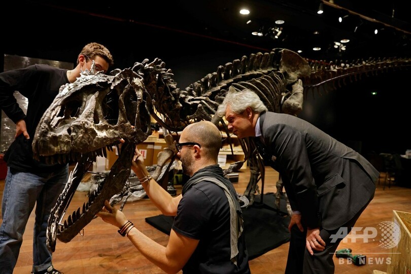 【10月14日 AFP】フランス首都パリで13日、大型肉食恐竜ティラノサウルス・レックス(T・レックス、Tyrannosaurus rex)の「祖父」とも呼ばれるアロサウルス(Allosaur)の希少な化石標本が競売に掛けられ、300万ユーロ(約3億7000万円)超で落札された。