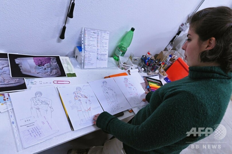 同じく修復家のキネ・セッティミニ(Kine Settimini)さんは、「大理石像でも石こう像でも、このコレクションで特に興味深いのは挿入材、つまり過去の修復部分のすべてです。われわれはそれぞれの作品の来歴を物語るものとして記録を残しています」と語った。
